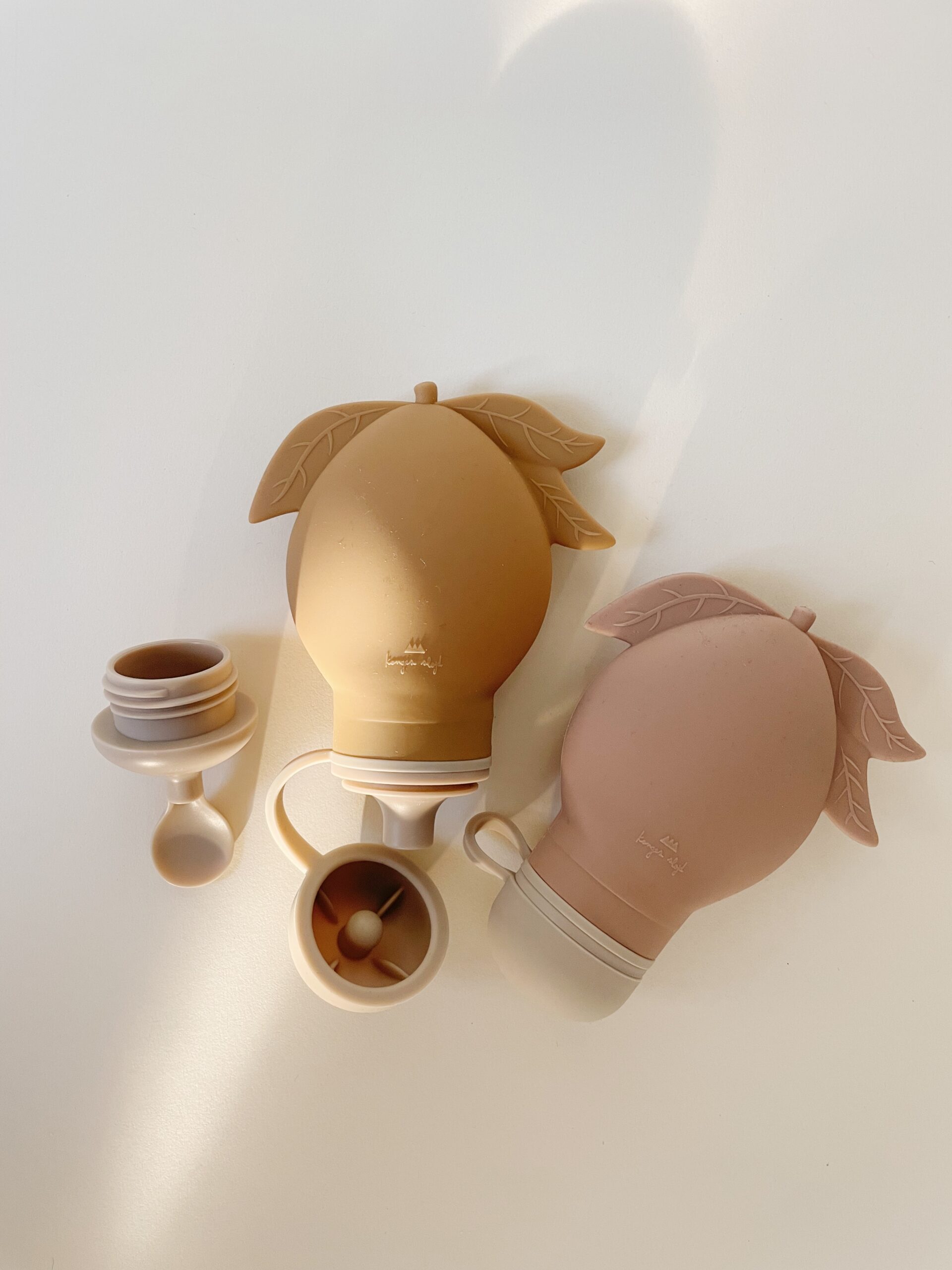Ce sac en silicone est également fourni avec une cuillère à visser pratique et un capuchon de protection pour garder l’embout propre et hygiénique.