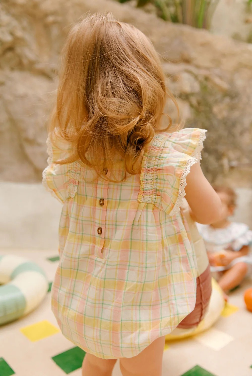 Un vent de fraîcheur souffle sur la garde-robe d’été avec cette adorable barboteuse à carreaux. Une pièce lumineuse et pleine de charme pour les tout-petits.