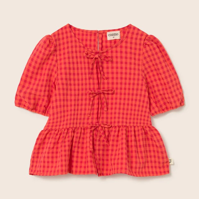 La blouse coton vichy Joy de Cozmo apporte fraîcheur et style aux tenues des filles. Son motif carreaux rouges et blancs crée un look estival charmant et élégant.