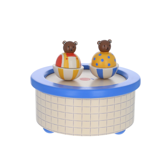 La boîte à musique ours Petit Déj invite bébé à la douceur et au calme. Tournez simplement la molette sous la boîte et la mélodie se met à jouer doucement. Les oursons dansent et accompagnent bébé dans ses moments de sieste ou avant le coucher.