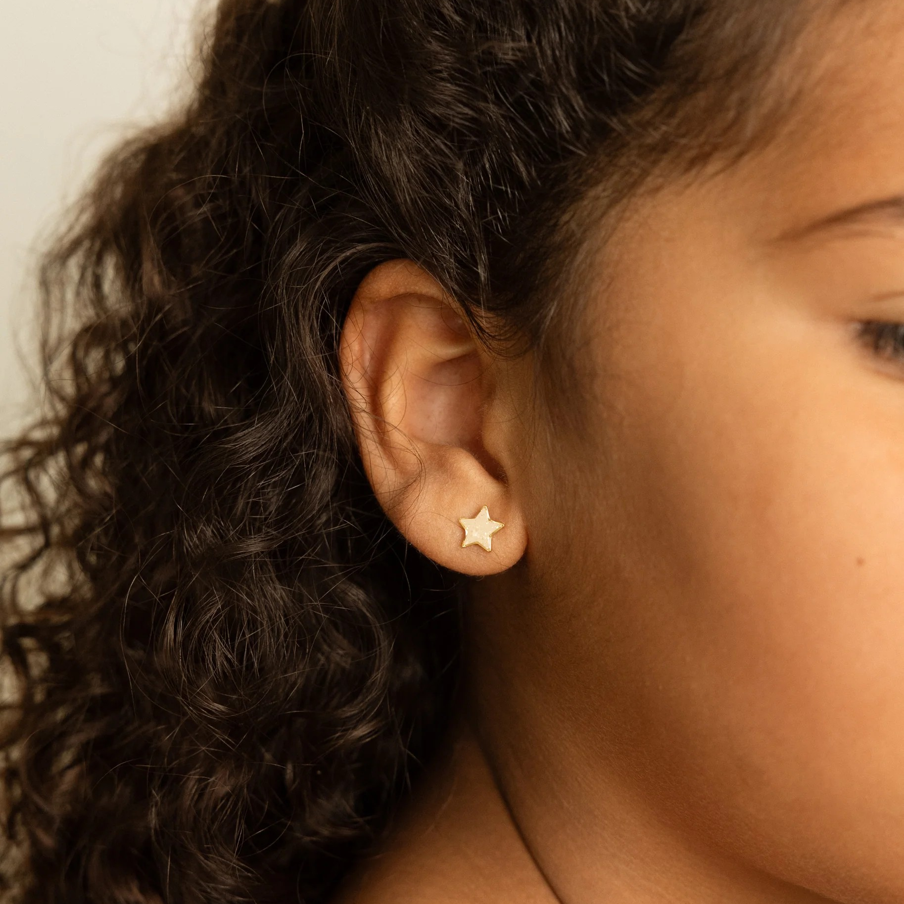 Des boucles oreilles puces étoiles parfaites pour un cadeau élégant et sûr, dès le plus jeune âge.