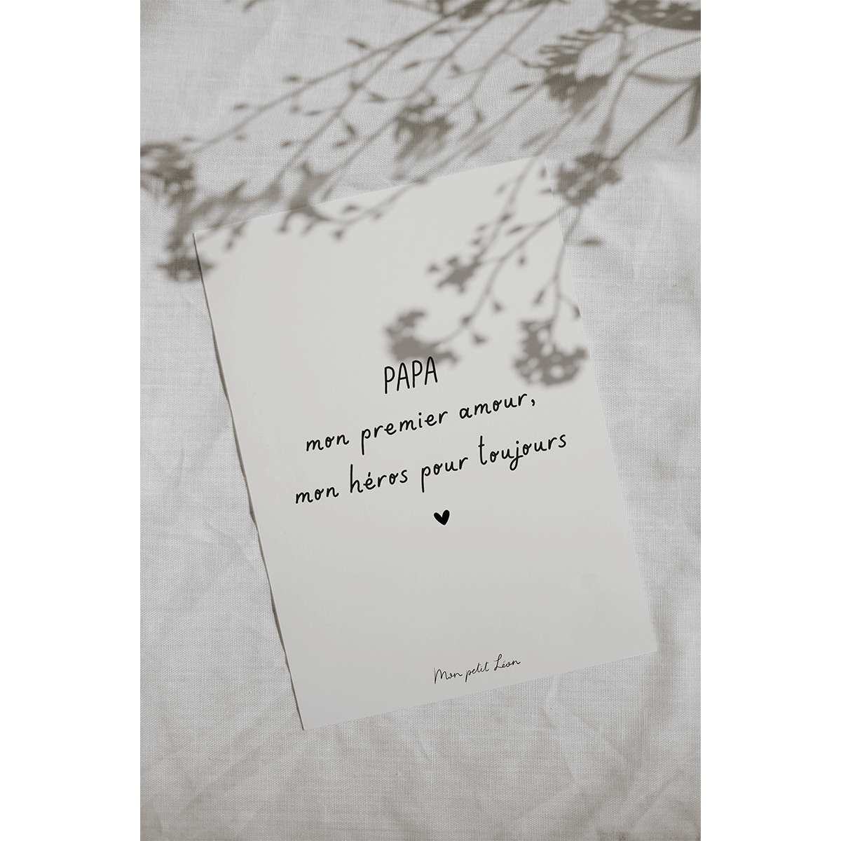La carte citation papa « Papa mon premier amour » est une déclaration touchante et universelle. Elle exprime la place unique du papa dans la vie d’un enfant et met en lumière ce lien précieux, empreint de tendresse et de protection.
