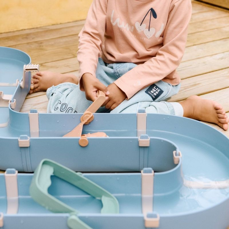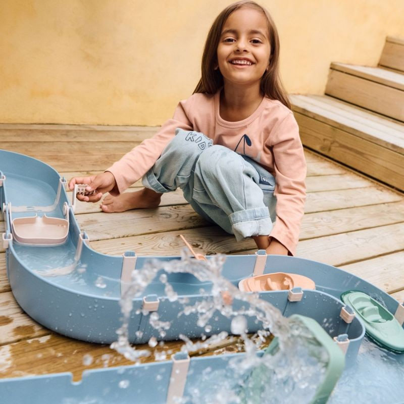 Fabriqué à 60 % en polypropylène recyclé, ce modèle allie plaisir et démarche responsable. Le circuit d’eau enfant s’utilise en extérieur, sous la surveillance d’un adulte. Il suffit ensuite de le vider et de le laisser sécher.
