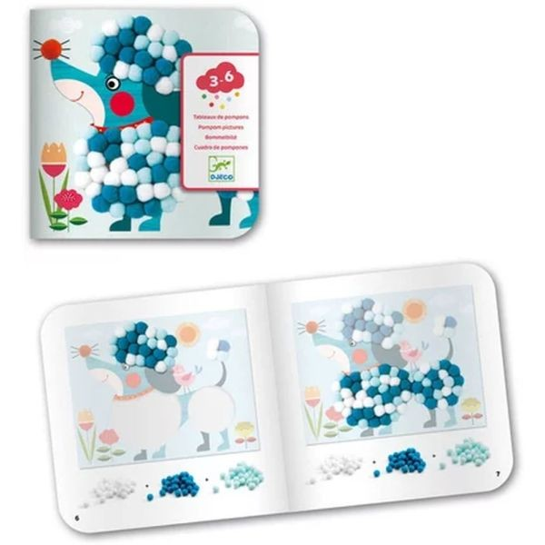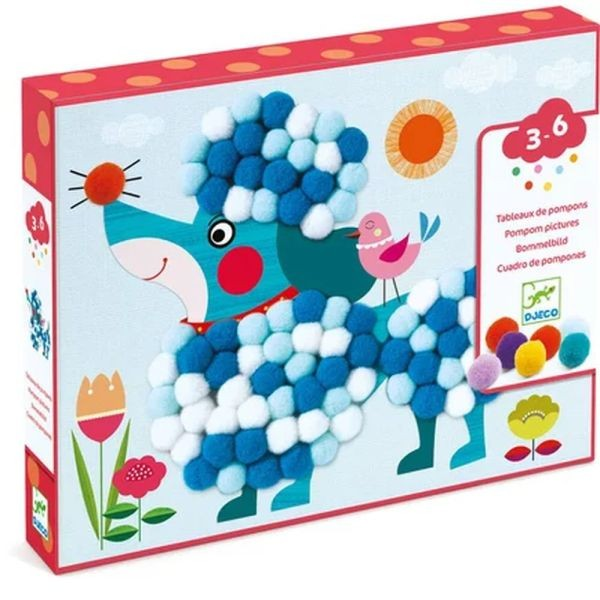 Un coffret collage pompons enfant tendre et ludique, idéal pour les premières activités créatives.