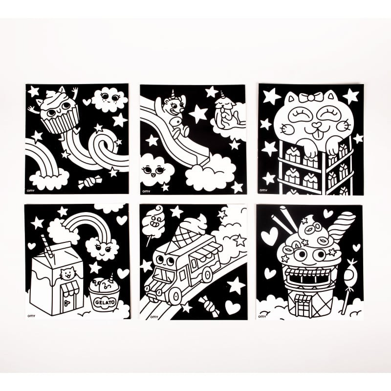 Entrez dans l’univers Kawaii avec ce kit de coloriage velours de OMY ! Faciles à colorier, ces 6 tableaux sont décorés de motifs adorables : cupcakes, arcs-en-ciel, et chatons mignons. Les contours en velours aident les enfants à colorier sans dépasser, rendant l’activité ludique et accessible aux plus petits. Une activité parfaite pour stimuler la créativité et la dextérité tout en s’amusant.