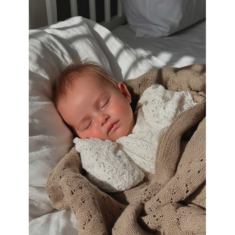 Avec ses dimensions de 75 x 75 cm, elle enveloppe bébé avec chaleur, que ce soit à la maison, en poussette ou lors des sorties. Son tricot classique apporte une touche d’élégance et de raffinement, inspirée des traditions espagnoles où chaque pièce était réalisée avec soin pour accueillir les nouveaux-nés.