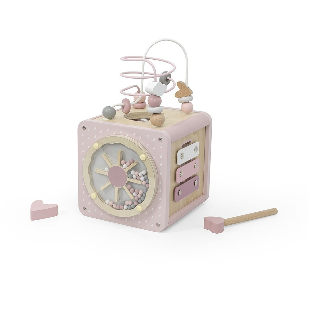 Durable, pratique et ludique, le cube activités rose devient vite un jouet phare, parfait dès 18 mois.