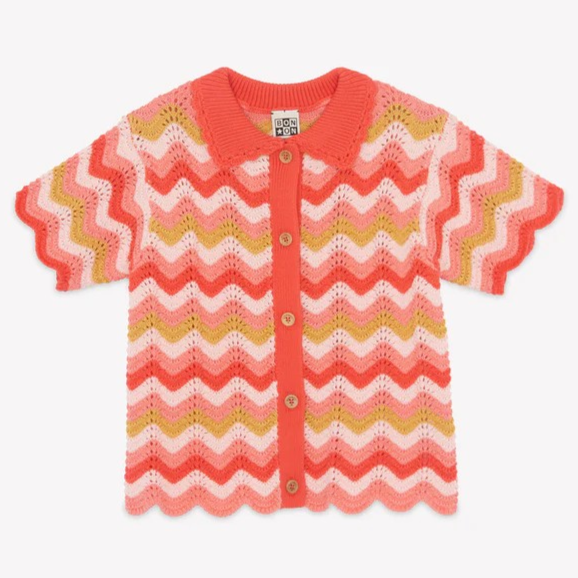 Le gilet en crochet enfant Bonton Rose Amor Ninon est une pièce douce et raffinée, idéale pour illuminer les tenues du quotidien avec élégance.