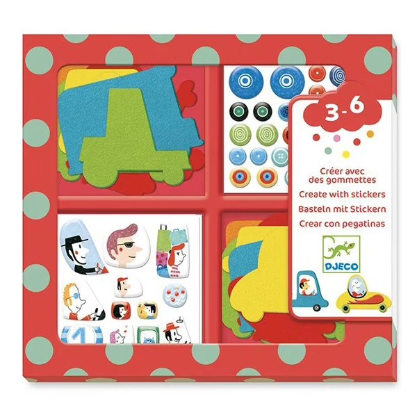 Les gommettes voitures de Djeco proposent une activité créative simple et amusante dès 3 ans. Le coffret permet de décorer 24 silhouettes de voitures en feutrine à l’aide de stickers colorés. Chaque enfant crée ses propres véhicules selon ses envies.