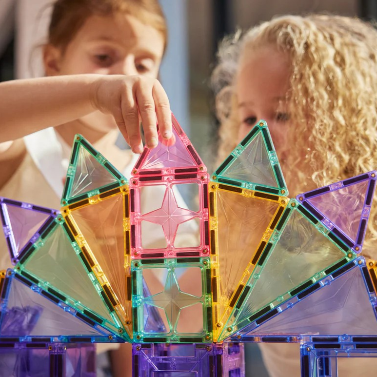 Les aimants puissants permettent de bâtir des constructions stables. Les pièces peuvent aussi s’utiliser verticalement sur un radiateur ou une surface magnétique pour créer de jolies œuvres colorées. Les enfants adorent également tracer des chiffres ou des lettres grâce à des marqueurs effaçables.