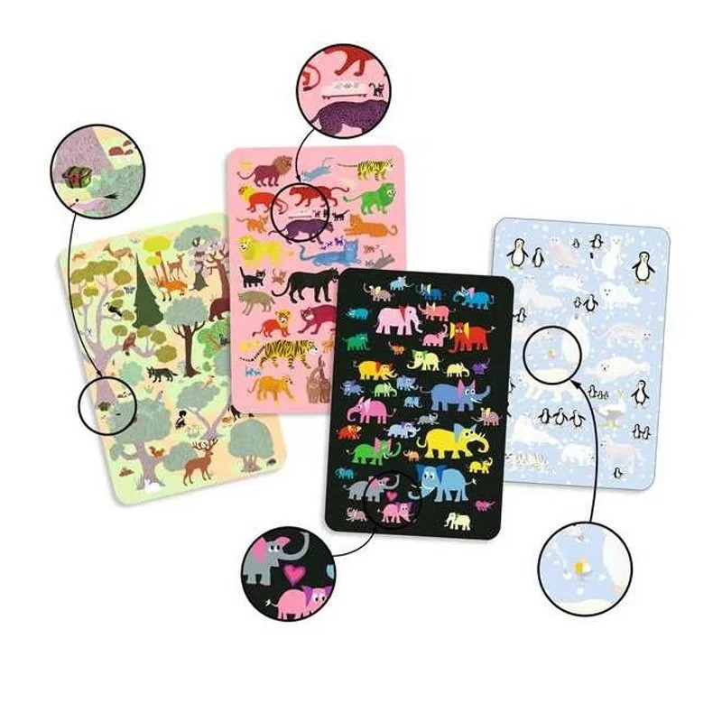 Découvrez Myster Animo de Djeco, un jeu d’observation et de rapidité qui met vos sens à l’épreuve ! Dès 4 ans, ce jeu propose aux joueurs de chercher et de retrouver l’intrus dissimulé parmi les cartes. Chaque carte représente une scène avec des animaux, et l’objectif est de repérer l’animal qui ne correspond pas à la situation. Un jeu qui stimule l’observation et la réactivité des plus jeunes !