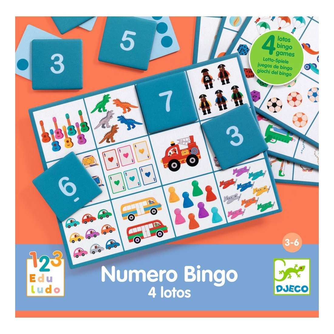 Le jeu loto enfants Numéro Bingo Djeco est un classique éducatif parfait pour apprendre en s’amusant. Il propose 4 jeux de loto différents autour des chiffres et des quantités.