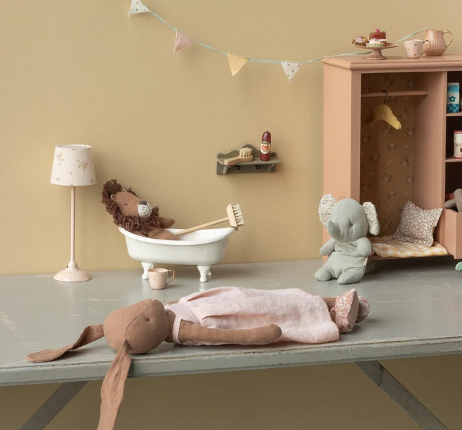 Adapté à la grande maison Maileg, ce lampadaire miniature permet aux enfants de personnaliser leur univers et de créer des scènes réalistes. Son ton poudre ajoute une touche douce et charmante à tous les décors.