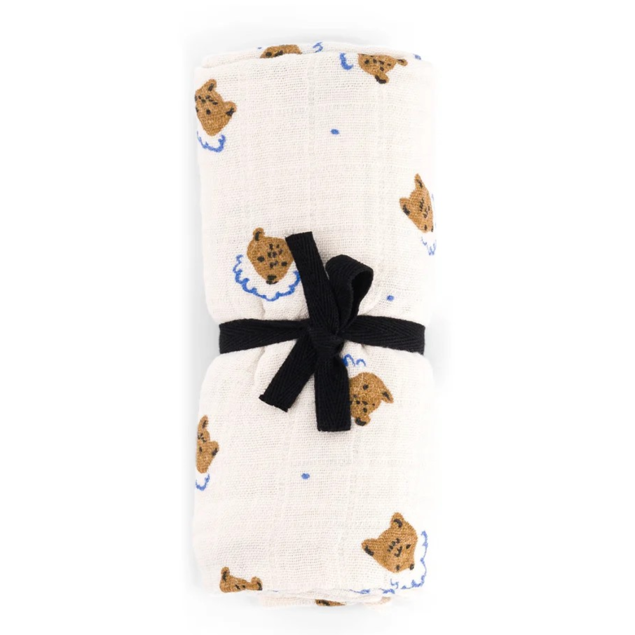 Fabriqué au Portugal en mousseline de coton douce et respirante, ce lange respecte parfaitement la peau sensible des bébés. Sa texture légère offre un confort optimal, que ce soit à la maison ou lors des sorties. L’imprimé Teddy Petit Ourson apporte une touche tendre et réconfortante, idéale pour créer un univers doux autour de bébé.