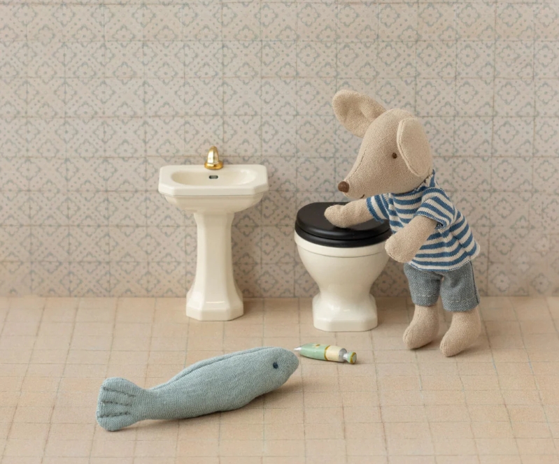 Adapté aux souris Petit(e)s frère/sœur, ce lavabo miniature souris Maileg complète parfaitement l’univers des maisons miniatures et permet de prolonger les jeux imaginatifs des enfants.