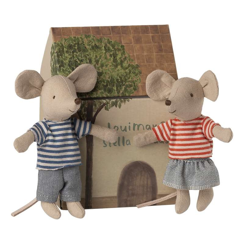 LouiMax et Stella souris invitent les enfants à des aventures pleines de tendresse. Ces petites souris Maileg mesurent 11 cm et s’intègrent parfaitement dans la maison mobile SuitCasa. Livrées dans une mini-boîte en forme de maison, elles sont aussi mignonnes qu’ingénieuses.
