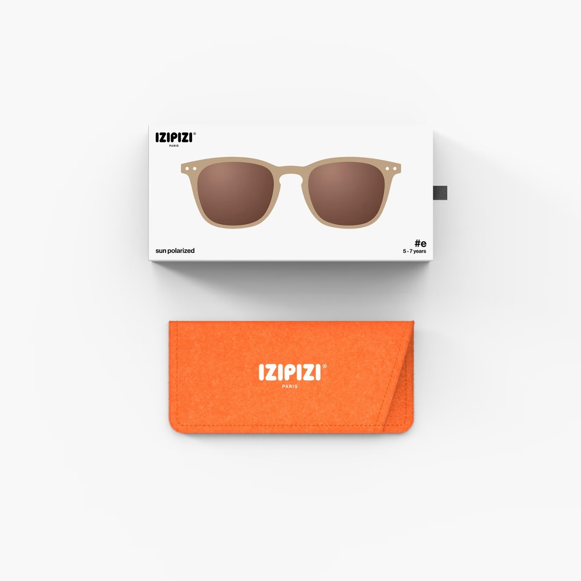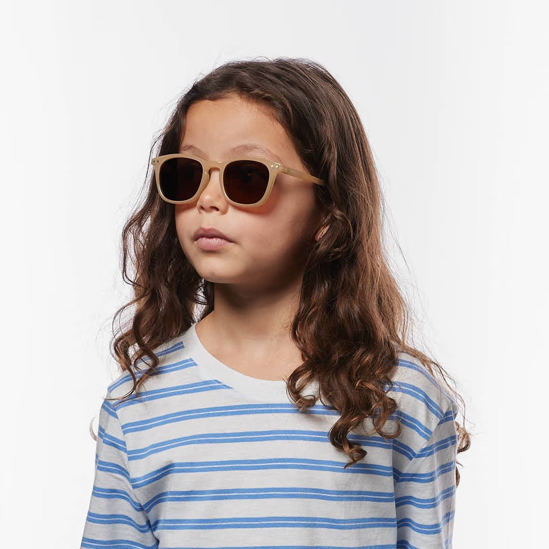 La monture adopte une mini forme trapèze inspirée du modèle adulte #E. Fine et confortable, elle s’adapte parfaitement aux visages des enfants. La teinte Macchiato, un beige délicat mêlé de brun clair, offre un style naturel et élégant. Sa finition brillante apporte une touche lumineuse qui plaît beaucoup aux enfants.