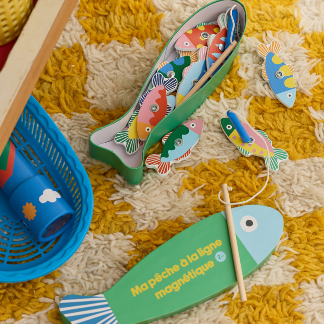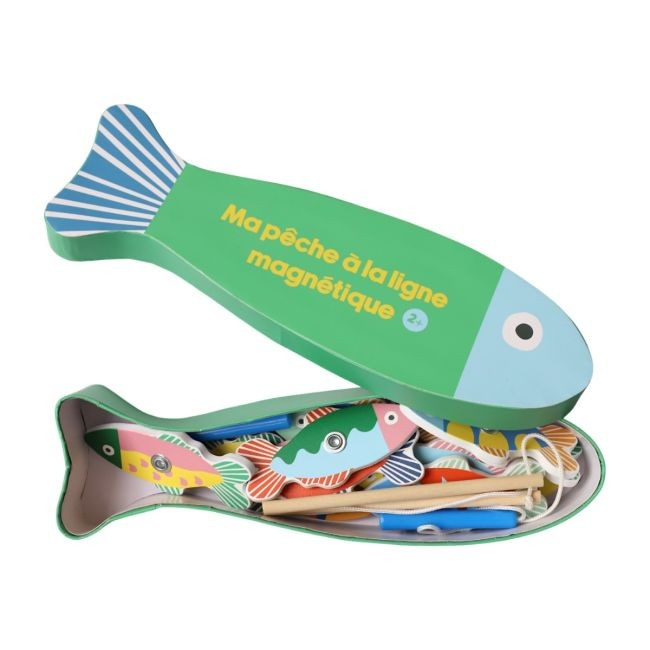 La pêche à la ligne magnétique poissons Mercredi et Patati offre un jeu amusant et éducatif. Les enfants utilisent une canne aimantée pour attraper les poissons colorés en bois. Chaque prise développe la motricité fine, la précision et la concentration dès 2 ans.