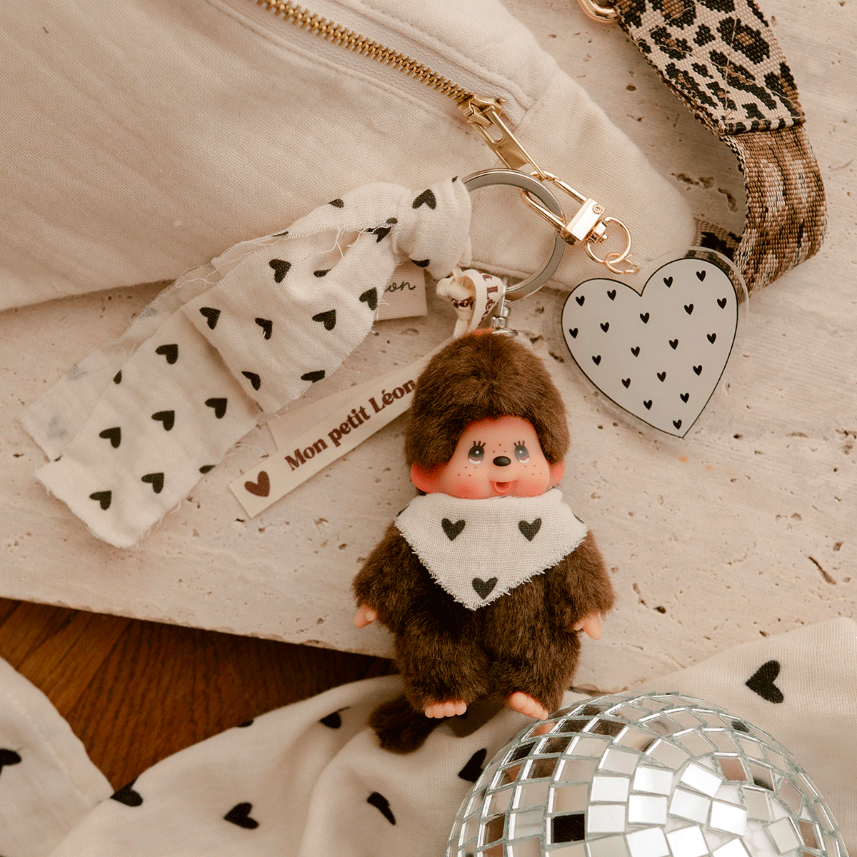 Quand Mon Petit Léon rencontre le mythique Kiki de notre enfance, cela donne naissance à un accessoire collector : le porte-clé Grigri Kiki avec cœur !