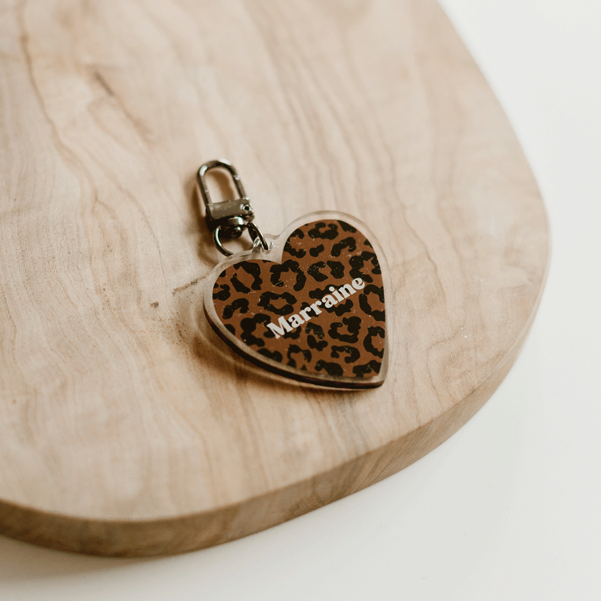 Offrez ce porte-clé léopard Marraine signé Mon Petit Léon avec le message « Marraine », un accessoire à la fois pratique et tendance. Il symbolise l’affection et la complicité avec votre marraine, tout en ajoutant une touche mode à ses affaires.