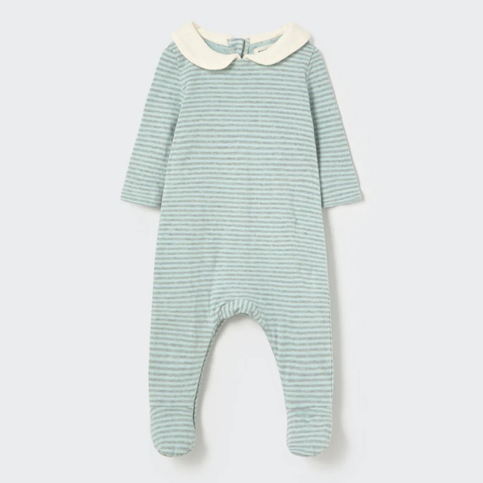 Ce pyjama rayé est doté d’un col Peter Pan uni, de manches longues et de pieds intégrés pour garder bébé au chaud. Les pressions au dos et sur les jambes permettent un habillage rapide et un changement de couche facile. Sa maille respirante assure que bébé reste confortable sans surchauffe.