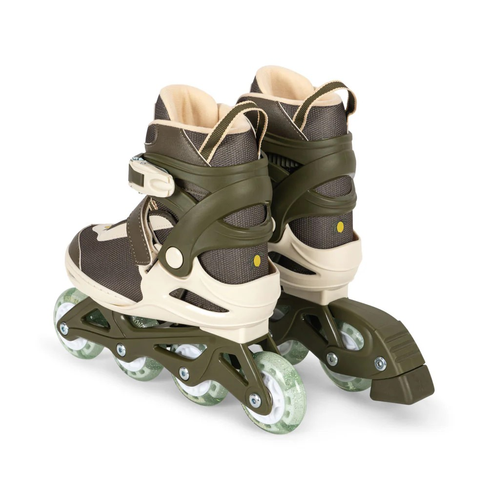 Certifiés CE, ces rollers garantissent une pratique sûre, conforme aux normes européennes. Leur style unique, rehaussé par la couleur vert kaki Kalamata, s’associe à l’élégance naturelle propre à la marque Konges Slojd.