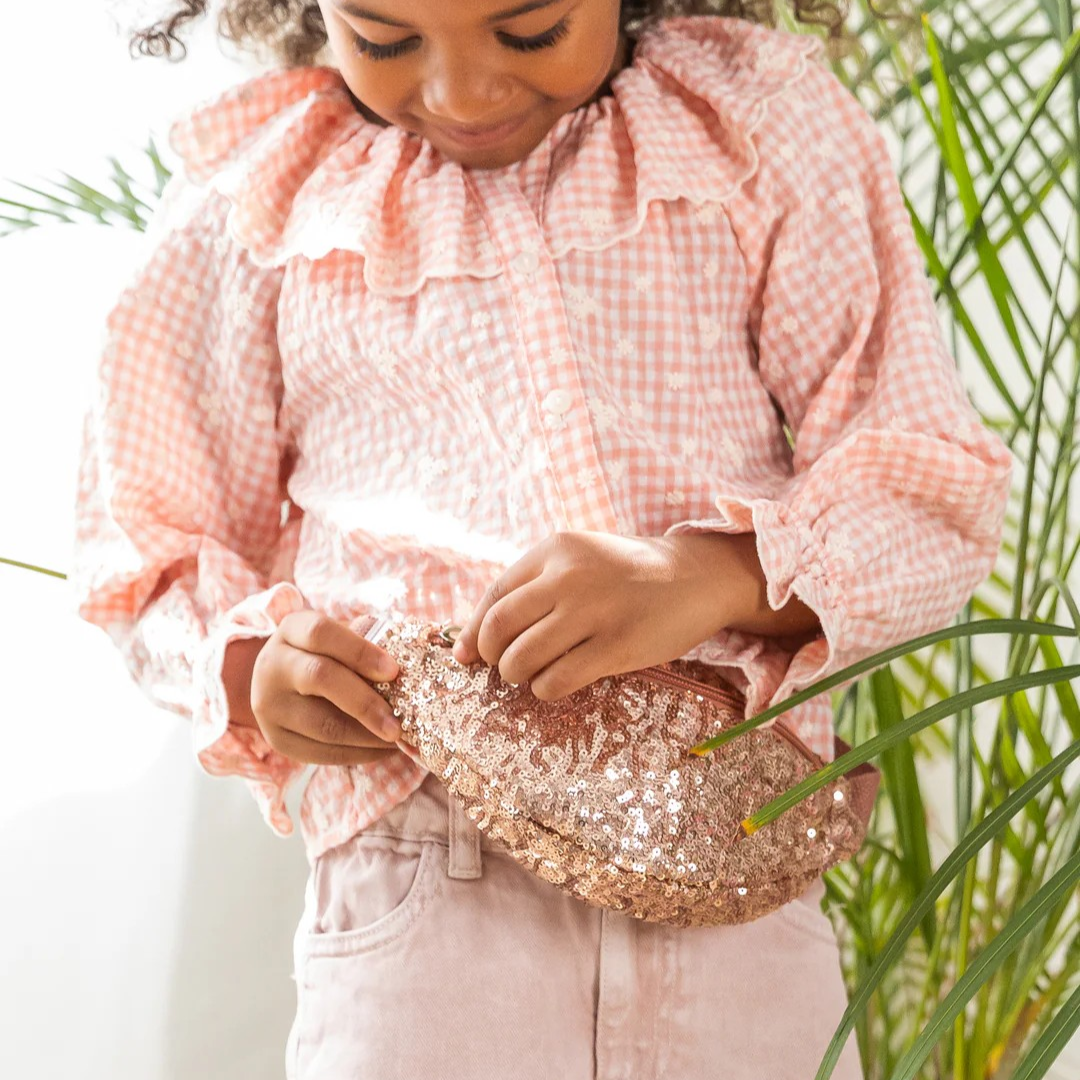 Le sac banane sequins roses de Luciole et Petit Pois est un concentré de paillettes et de bonne humeur. Entièrement recouvert de sequins roses scintillants, il attire tous les regards et apporte une touche glam aux tenues du quotidien. Un accessoire fun, pensé pour briller sans effort.