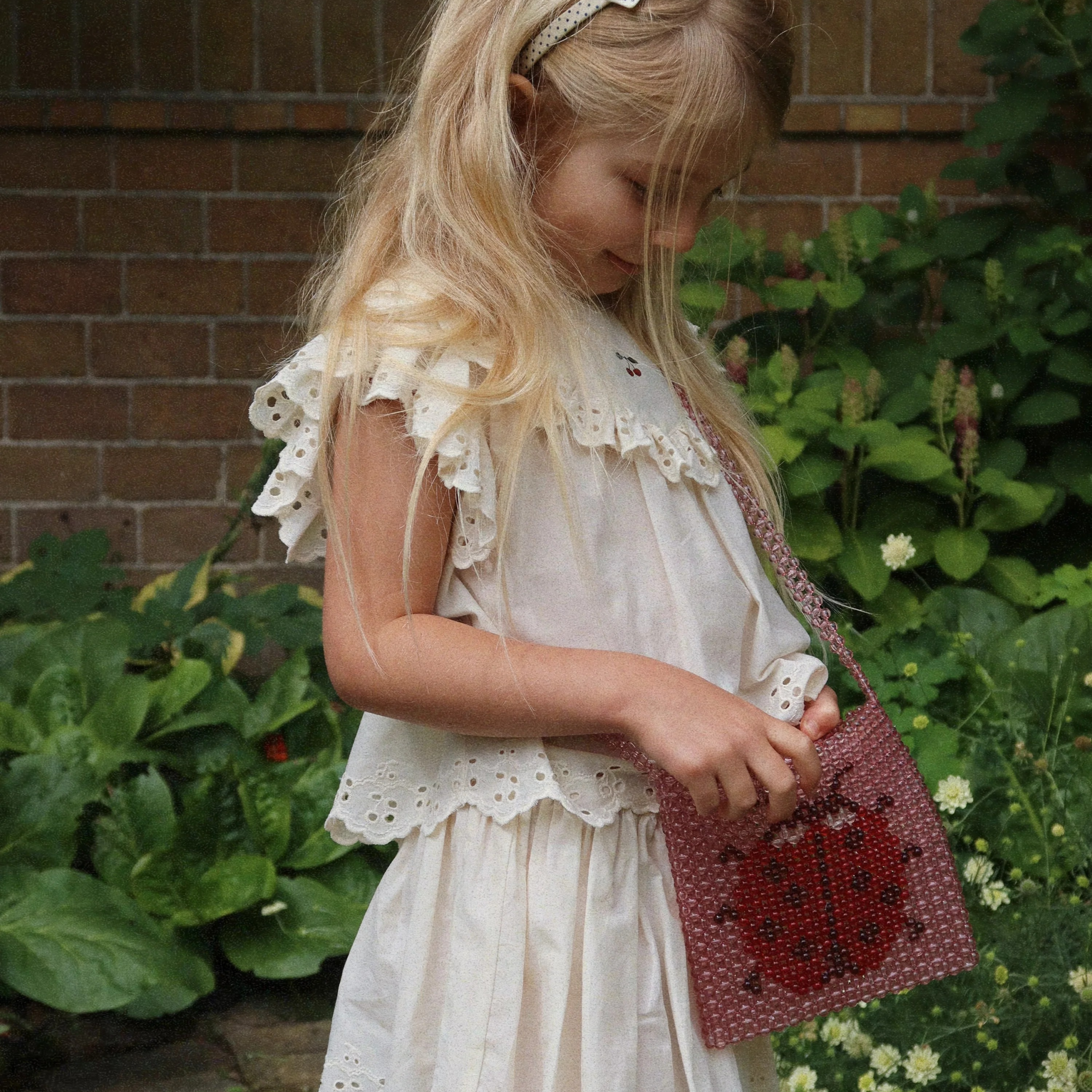 Ajoutez une touche ludique et estivale aux tenues de votre enfant avec le sac bandoulière en perles – Coccinelle de Konges Slojd. Fait main avec soin, ce sac miniature est orné d’une adorable coccinelle en perles qui apporte charme et fantaisie.