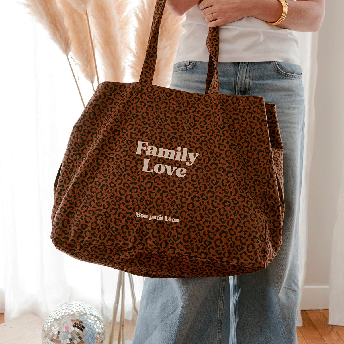 Sac cabas XXL léopard – Mon Petit Léon message Family Love