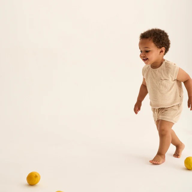 Un short bébé éponge doux et pratique, parfait pour un look confortable et stylé tout au long de la journée.