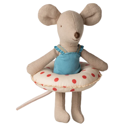 La souris de plage Maileg petite sœur est prête pour une belle journée d’été au soleil. Elle invite les enfants à imaginer des vacances joyeuses.