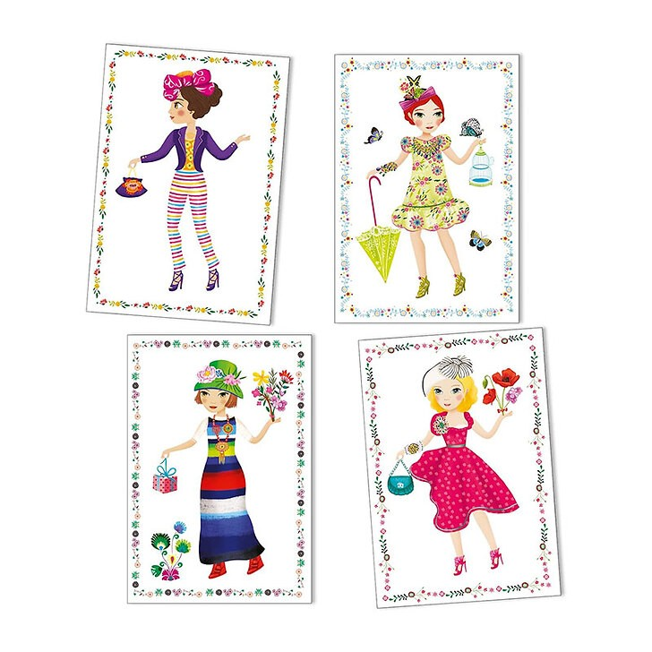 Les stickers trop mode de Djeco invitent les enfants à exprimer leur créativité tout en s’amusant. Chaque enfant peut personnaliser les 8 cartes personnages avec une multitude de vêtements et accessoires autocollants. Les stickers sont repositionnables, ce qui permet d’essayer différentes tenues et de créer des paper dolls uniques à chaque partie.