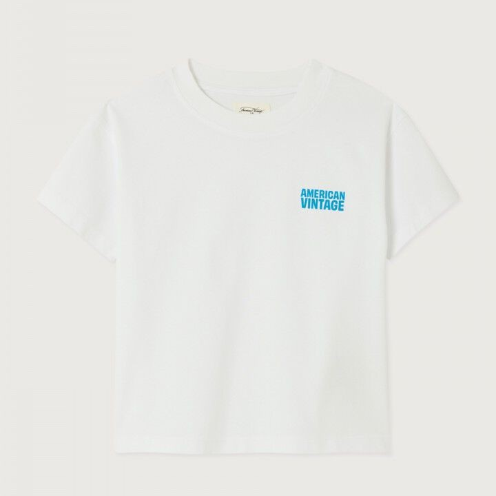 Le patch logo American Vintage bleu, imprimé avec discrétion, apporte une touche graphique et moderne. Ce détail signature donne du caractère au t-shirt tout en restant sobre. Sa couleur blanche permet de l’associer facilement avec un short, un jean ou un pantalon plus habillé.