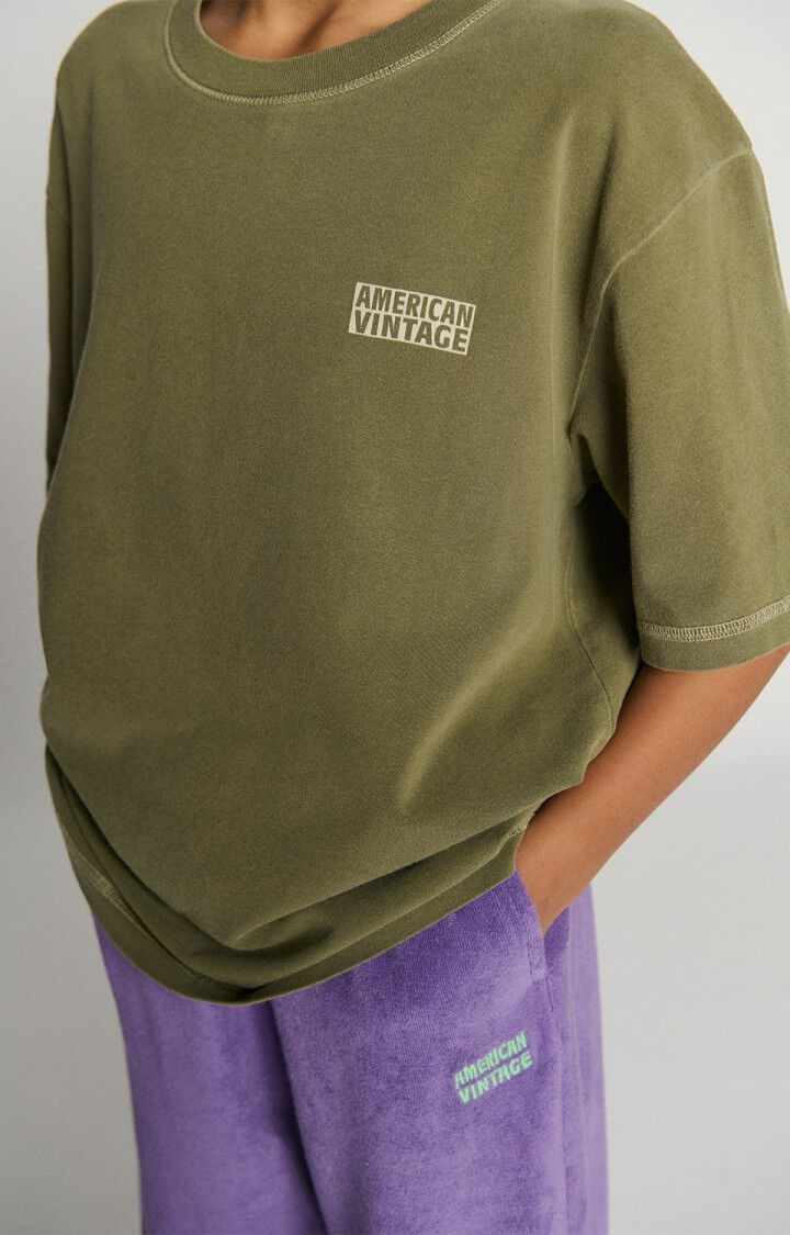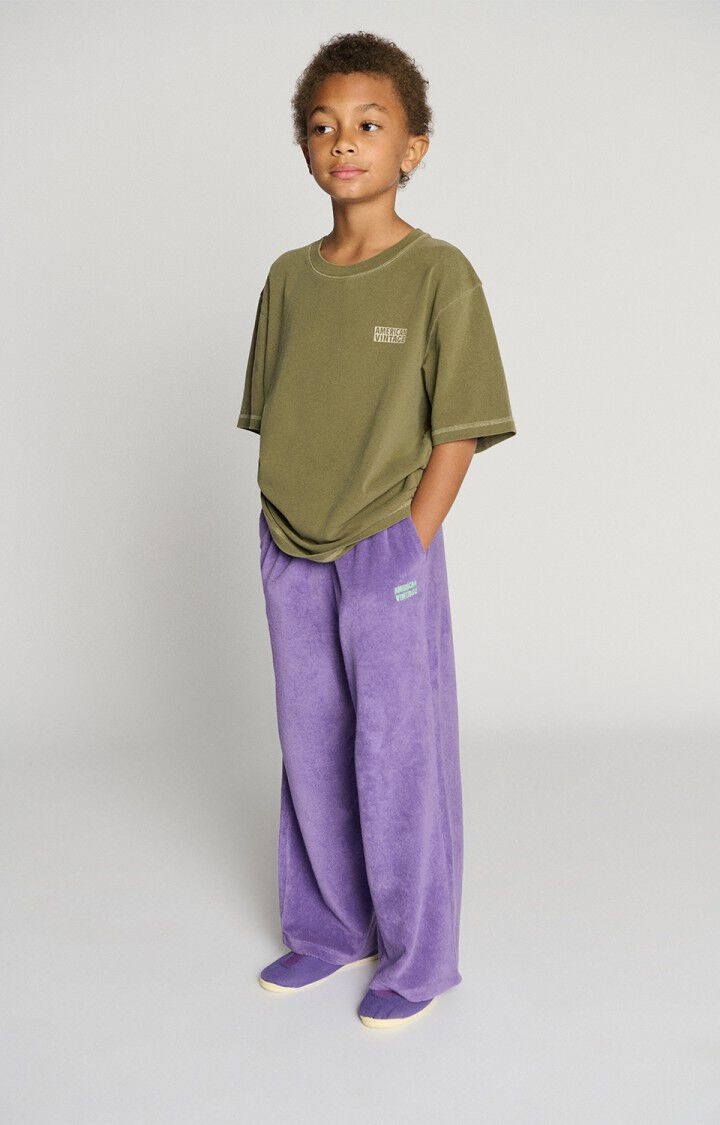 Le t-shirt oversize enfant Pymaz s’enfile facilement grâce à son col rond et sa coupe large. Il devient vite un basique du vestiaire des enfants.
