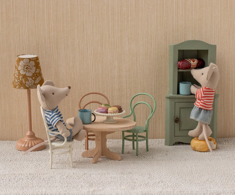 Adaptée aux souris Petits frère/sœur, elle se place facilement dans la maison mobile SuitCasa et complète parfaitement l’univers Maileg. Les enfants peuvent organiser des repas imaginaires et créer des moments de jeu réalistes.