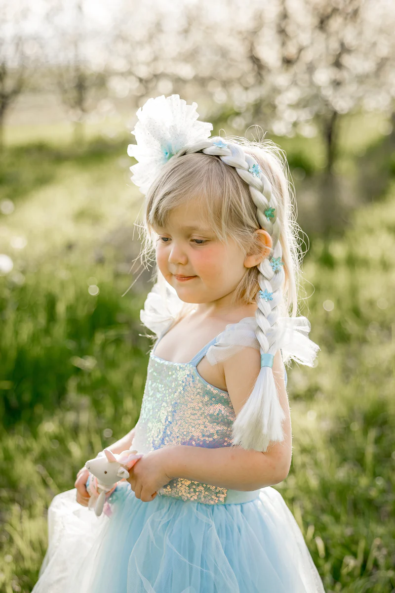 Faites briller la magie de l’hiver avec la tresse Reine des Neiges de Great Pretenders, un accessoire féerique inspiré de la belle Elsa. Cette magnifique tresse blonde et bleue est ornée de flocons scintillants qui descendent en cascade, rappelant une chute de neige magique.