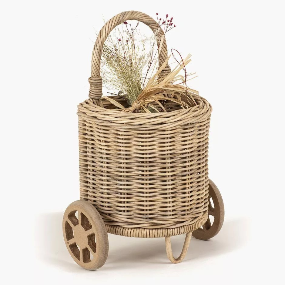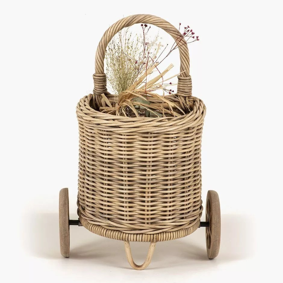 Fabriqué en osier et rotin tressé, ce trolley séduit par son charme artisanal. Il peut aussi devenir un bel élément de décoration dans une chambre, une salle de jeux ou même un salon. On peut l’utiliser pour y déposer quelques fleurs séchées ou pour créer une jolie mise en scène.
